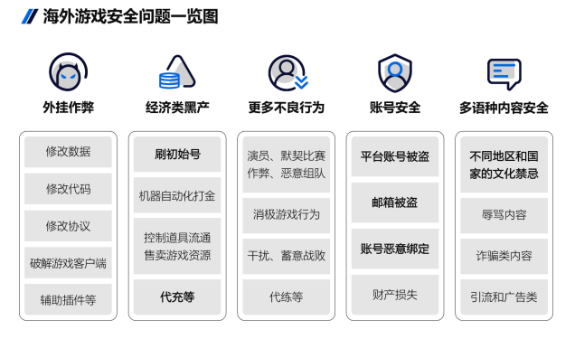 海外游戏安全问题差异化明显,安全合规能力成为海外安全方案建设基础。
