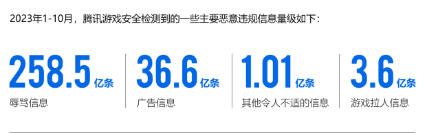 在游戏中,违规信息主要包括引流广告、辱骂、低俗等内容,其中具有游戏特色的引流广告主要包括代练、代充、买卖金币、买卖外挂等。在腾讯游戏安全检测到的一些主要恶意违规信息类型中,辱骂信息成为主要问题,占比超过86.1%。