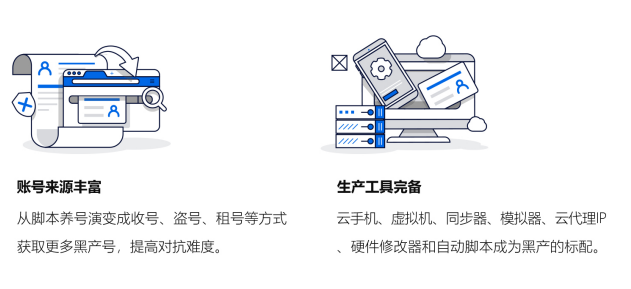 随着黑产团伙越发成熟,管控难度也随之增加,需要持续迭代系统全面的技术和管控方案,来进一步限制黑产。总体来看,当前阶段难点主要表现有以下四点:
