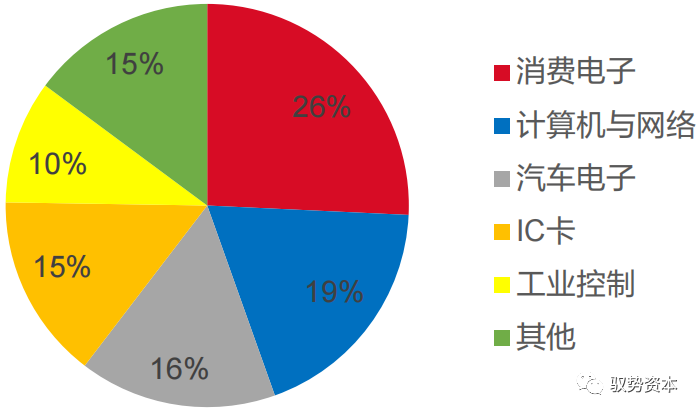 (1)消费电子是国内MCU第一大下游市场,应用领域极为广泛。我国作为全球消费电子产业大国,PC、手机、家电、可穿戴设备等消费电子产品的制造和组装环节高度集中,对于消费级MCU的需求量较大,因此消费电子目前仍为国内MCU最大的下游市场。消费级MCU凭借其低功耗、高性价比,低延时等优势,广泛应用于智能手机、智能家居、可穿戴设备等应用场景。