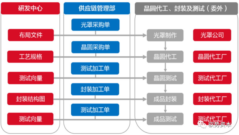 图 11 MCU厂商Fabless模式下的采购及生产流程