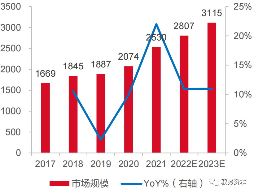 图 26 2017-2023E中国工业自动化市场规模(亿元)