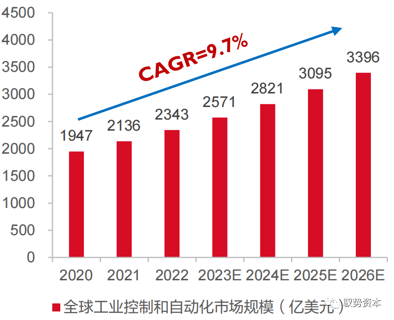 图 25 2020-2026E全球工控和自动化市场规模(亿美元)