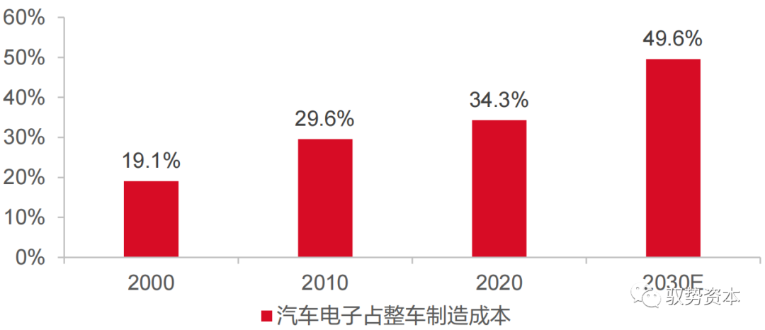 图 16 2000-2030E汽车电子占整车制造成本比重