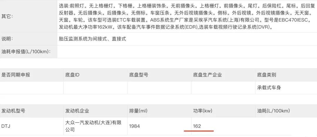 此次申报信息显示,全新途观L Pro提供低功率2.0T发动机和高功率2.0T发动机可选,其中,低功率2.0T发动机最大功率为137千瓦,高功率2.0T发动机最大功率为162千瓦。