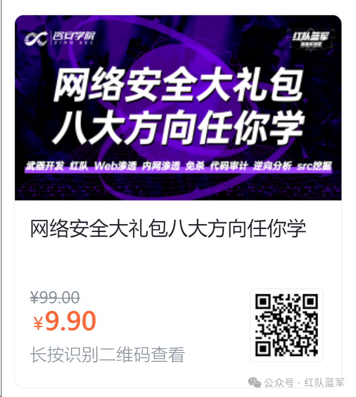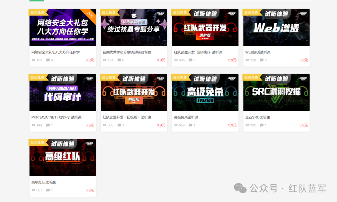 包含:武器开发(初级+进阶)、红队、web渗透、内网渗透、免杀、代码审计、逆向分析、src挖掘等课程