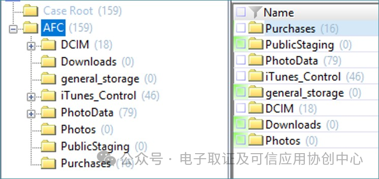 (1)DCIM文件夹包含从iPhone同步的图片。与原始图片相比,这些图片的尺寸会有所调整,但仍可包含相机型号名称和原始采集时间戳等有趣的元数据。