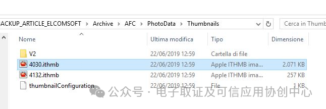 Thumbnails文件夹包含Apple Watch上存储的照片的缩略图。可以使用iThmb Converter分析ITHMB文件,并可能找到已删除图片的缩略图。