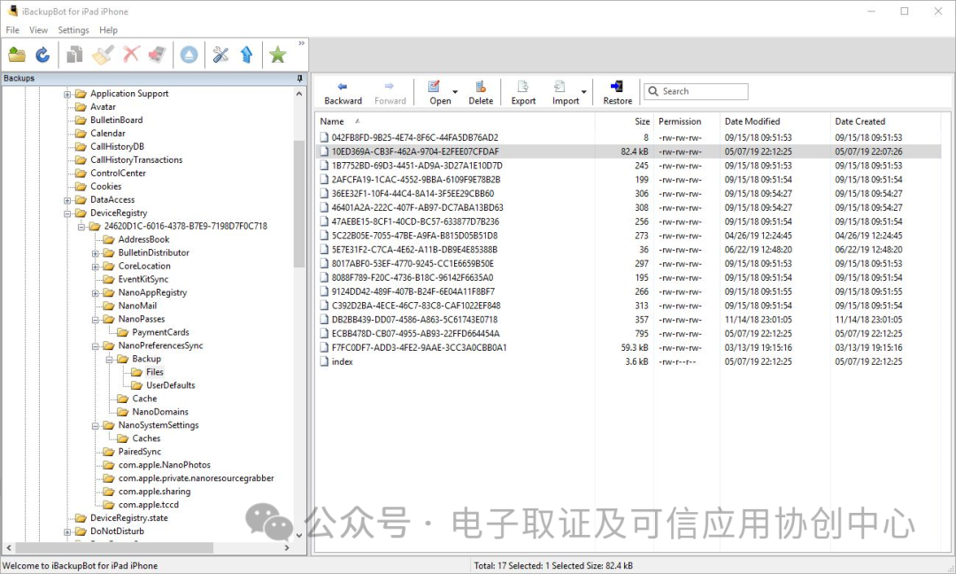 HomeDomain\Library\DeviceRegistry文件夹包含一个以stateMachine-<GUID>.plist文件的GUID 命名的子文件夹,该文件夹包含来自AppleWatch的备份数据。