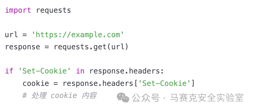 equests 库来发送 HTTP 请求并获取响应。如果响应中包含 Set-Cookie 头部,可以通过访问响应对象的 headers 属性来获取。以下是一个使用 requests 库发送 GET 请求并获取 Set-Cookie 头部的示例代码![]()