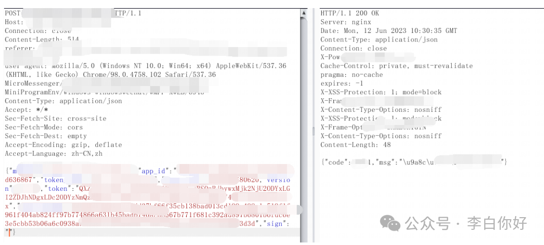 打开某某小程序,抓包,任意更改参数发包会报错,发现添加了sign字段。
