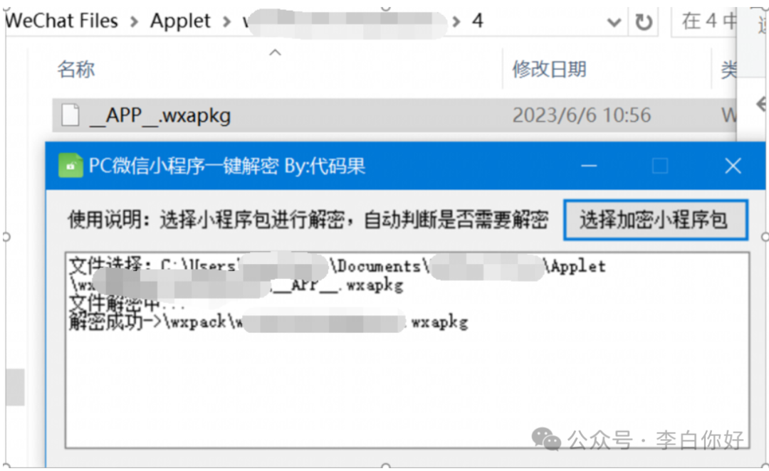 需要注意的是,一定要等小程序完全打开并且再点几个功能,确保将所有包都运行。找到对应的wxapkg查看是否可以直接反编译,有些会有加密,这时先使用工具Unpacker解密,再使用wxapkgconvertor工具将包反编译出来。