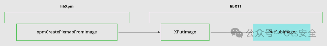 它调用易受攻击的xpmCreatePixmapFromImageXpm 函数,然后该函数又调用易受攻击的 libX11XPutImage函数PutSubImage。