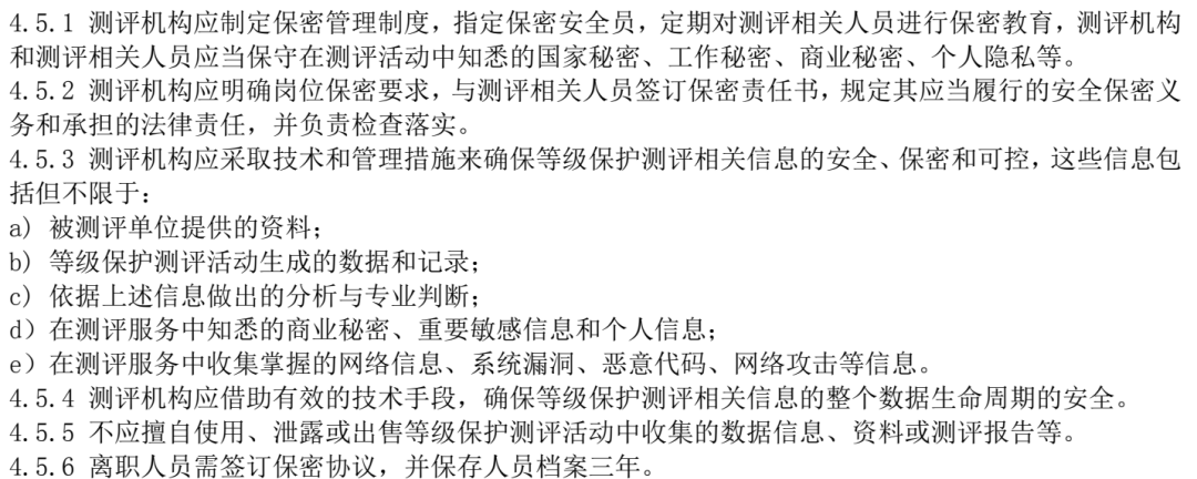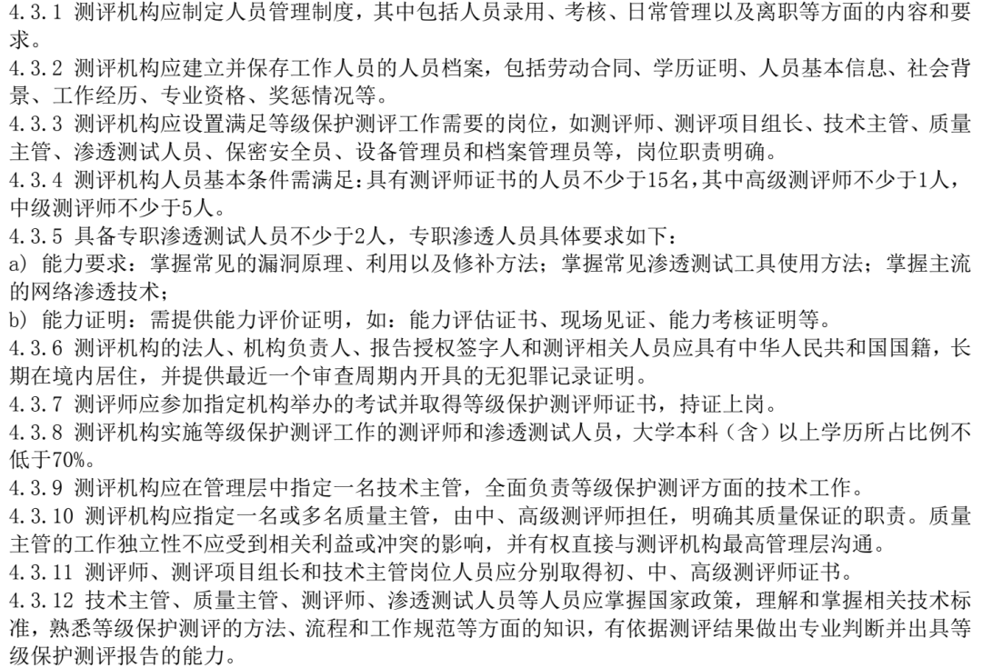 测评相关人员指与测评项目实施相关的人员,包括测评师、渗透测试人员、业务受理人员、 保密安全员、设备管理员和档案管理员等。