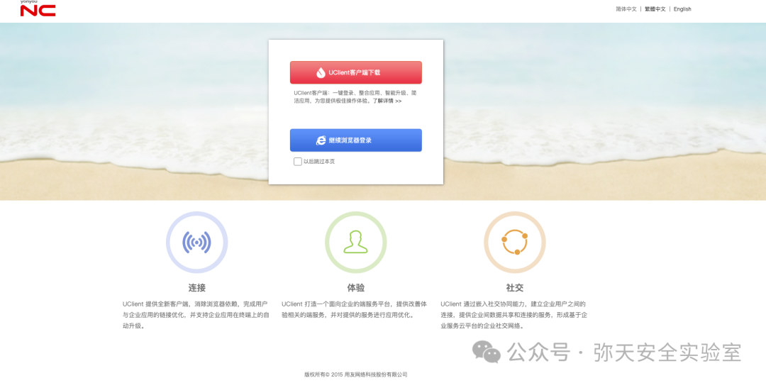 UClient 提供全新客户端,消除浏览器依赖,完成用户与企业应用的链接优化,并支持企业应用在终端上的自动升级。NC Cloud是用友推出的大型企业数字化平台。用友网络科技股份有限公司NC Cloud存在任意文件上传漏洞,攻击者可利用该漏洞获取服务器控制权。该系统IUpdateService接口存在实体注入漏洞。