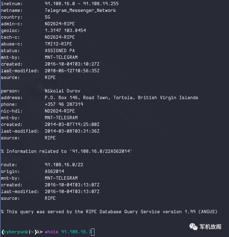 最近有个需求,查了些资料发现,Telegram有语音通话功能,也可以类似QQ一样通过语音通话的连接获取对方的IP地址, Denis Simonov (原文为俄语)发表过一篇文章,演示了如何通过 Telegram 语音呼叫获取目标人员的IP地址,只需5秒的呼叫时间就能拿到IP。原文在这:https://n0a.pw/telegram-get-remote-ip/,我尝试复现了下获取IP复现