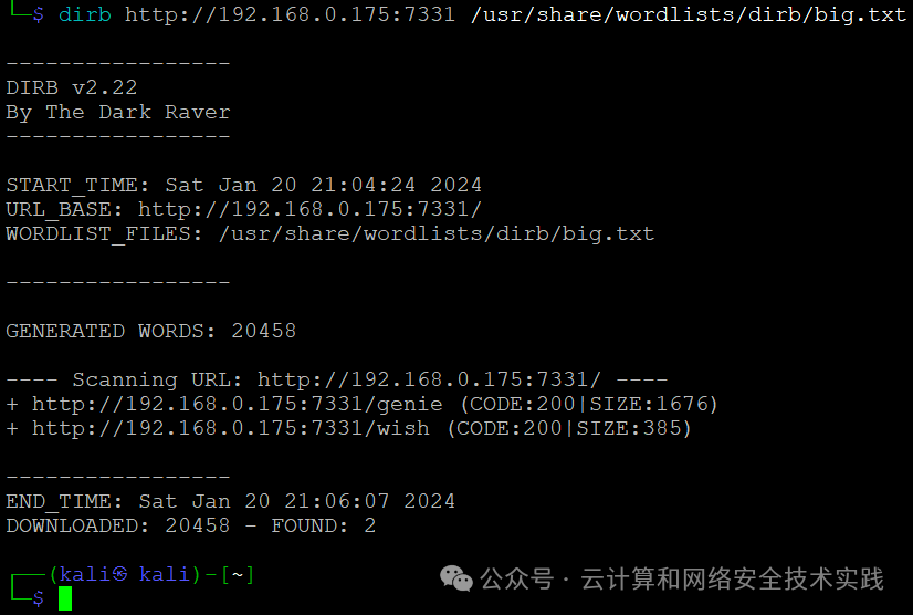 dirb http://192.168.0.175:7331 /usr/share/wordlists/dirb/big.txt,