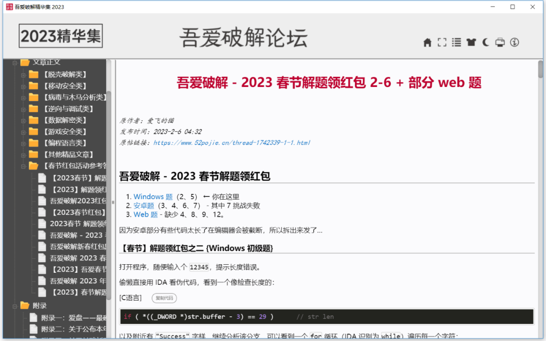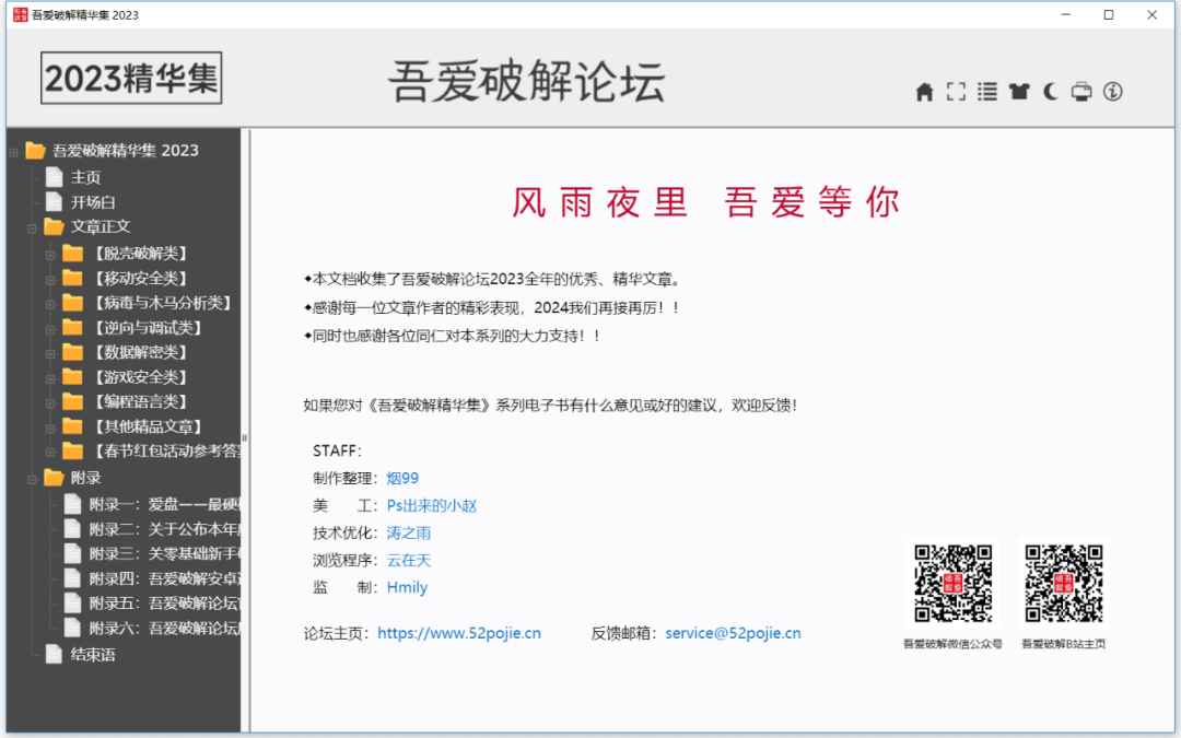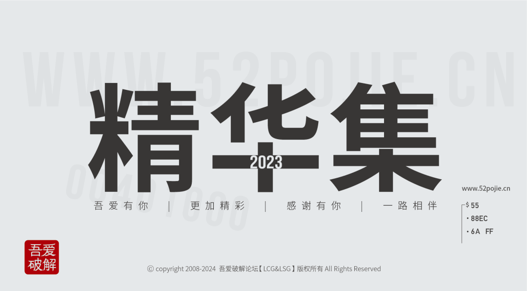 2023已悄然过去,非常感谢各位热心坛友的精彩文章!你们的辛勤付出也让我再次感受到互联网分享精神!为计算机网络安全建设添砖加瓦!最后祝愿吾爱破解论坛新的一年蒸蒸日上,明天更美好!