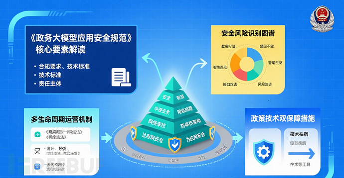 3)风险聚焦原则:优先管控高影响风险,如政务敏感数据泄露、公众服务类内容误导、供应链恶意后门等,针对不同场景实施差异化防护策略。