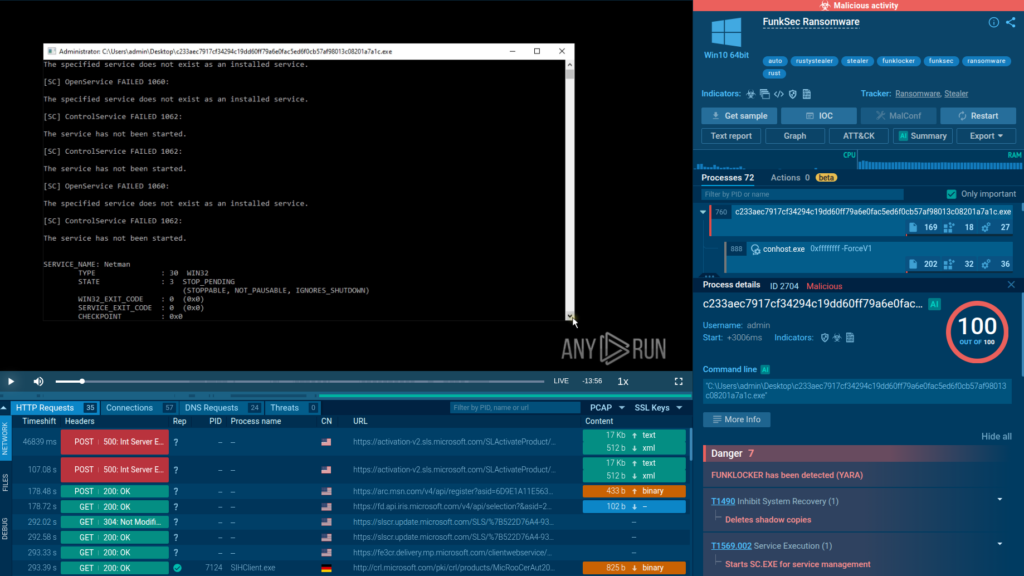 Here is FunkSec’s AI-assisted ransomware sample analyzed inside ANY.RUN’s sandbox: