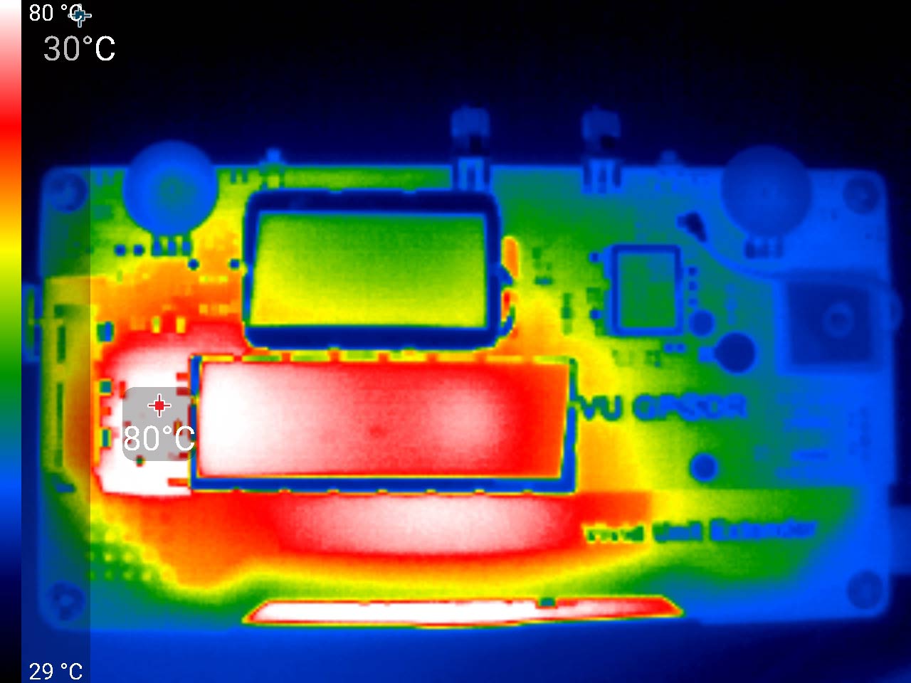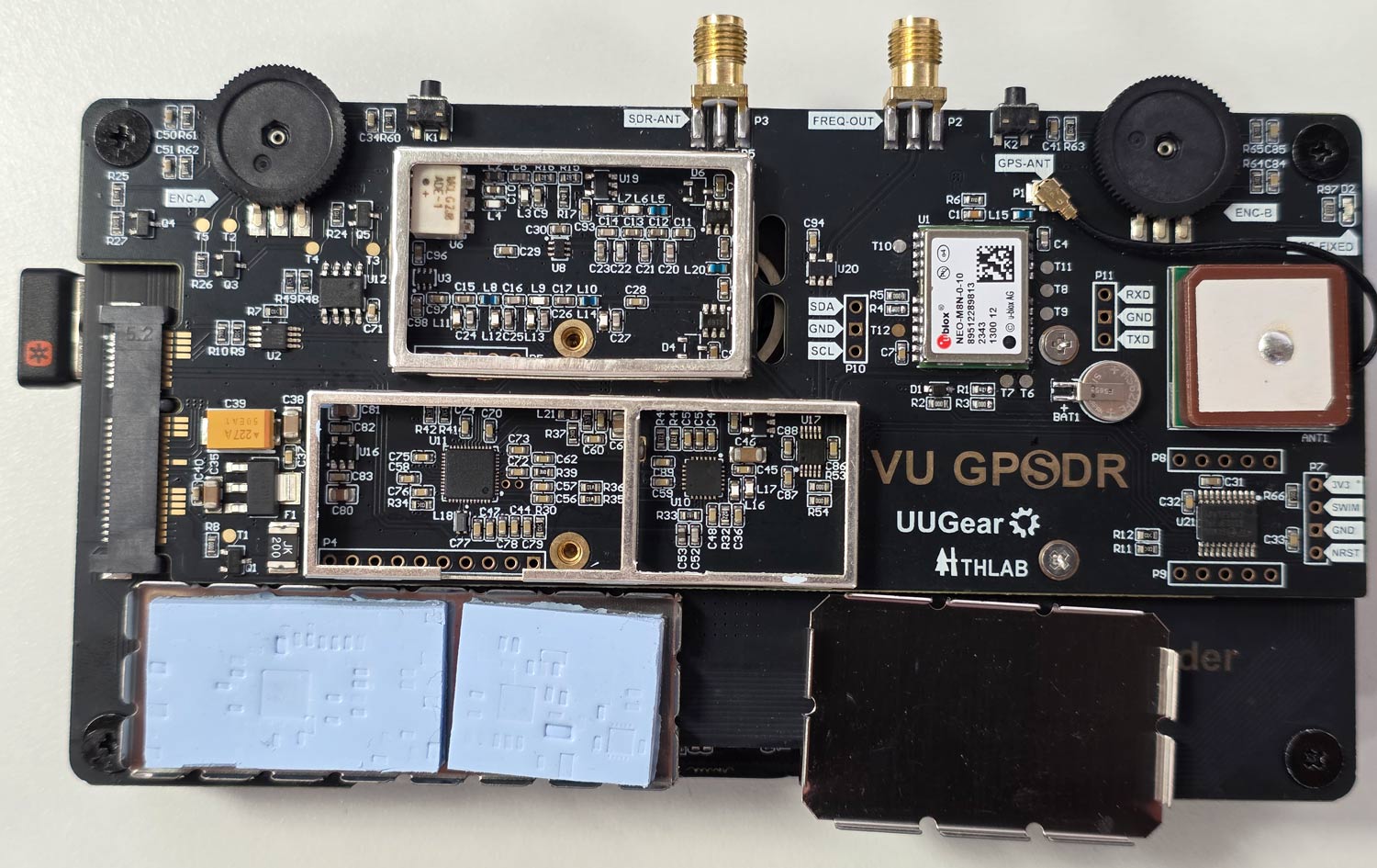 The exposed design results in some flaws that we have to point out. The shielding cans on the VU GPSSDR unit sit on the rear of the system, and during operation, they get very hot to the touch. So much so that handling the unit requires a bit of care to avoid the hot spots. Most of the heat appears to be coming from the AMS1117 LDO on the rear, which gets up to 80 °C, so be careful not to touch it accidentally. From the photos you can see that the RTL2832U and R860 are heatsunk to the shield. This is a good idea to keep the chips cool, but it also means that the metal gets quite hot to the touch. So handling the unit only from the edges is recommended.