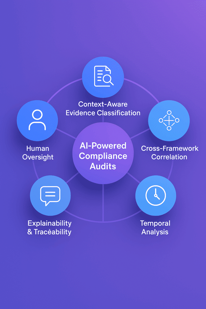 As AI becomes integrated into compliance auditing, its value depends on the maturity of the underlying capabilities. Effective systems are characterized by clear evidence handling, rigorous logic, and transparent operations that can withstand regulatory and audit scrutiny. Five capabilities, in particular, distinguish advanced solutions from basic automation tools.