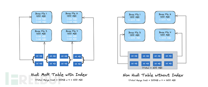 对于 Copy-On-Write表,索引可实现快速的插入/删除操作,因为无需与整个数据集连接来确定要重写哪些文件。对于Merge-On-Read 表,索引允许 Hudi 限制需要合并任何给定基础文件的更改记录数量。具体而言,给定基础文件仅需与属于该基础文件的记录的更新合并。相反,没有索引组件的Hive ACID需要将所有的基本文件与所有传入的更新/删除记录合并。