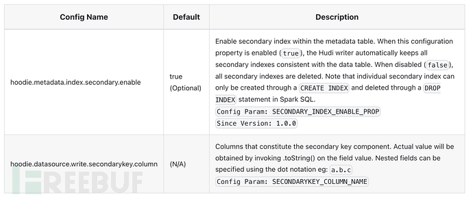 以下是控制在写入器上启用二级索引构建和维护的配置,后续会详细讲解,这个是1.0的新增的特性