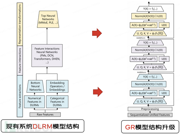 ❌ | Transformer为主体,模型结构收敛; Dense参数量1B~1T | ✅ Dense Transformer/HSTU等,Dense大小0.1B~10B | |