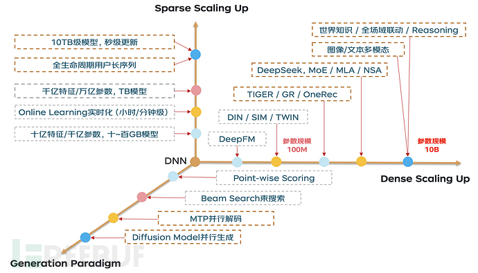 小结:我们的初衷是工程先行,借鉴大语言模型(LLM)领域的前沿技术能力(如MLA/NSA、MTP/Diffusion等),构建能够同时支持Sparse Scaling Up、Dense Scaling Up以及多种生成范式的高效生成与推理系统。这不仅涵盖若干前沿技术点,更是一条具备高度可行性的技术发展路径!