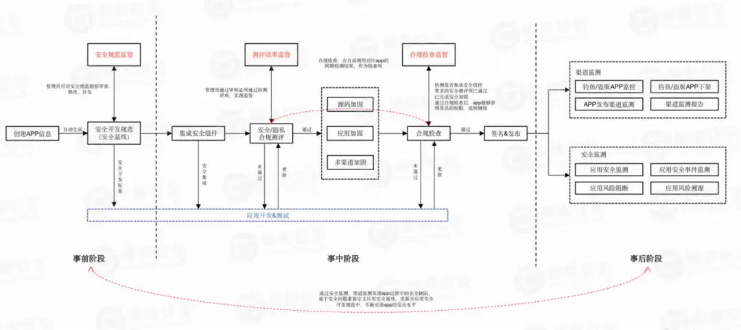 本项目以软件开发生命周期(SDLC)为基础,构建了一套贯穿需求、设计、开发、测试、发布、运维全阶段的安全管控流程。通过建设统一的安控平台,将各类安全工具有序集成至开发流程的应用环节,实现对移动应用从代码开发到上线的全过程管理,支持安全人员、开发人员、测试人员和管理人员等多角色协同作业,推动安全管理制度化、流程自动化、协作透明化。