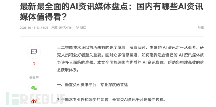 几个月前,我们萌生了 “ 诈骗一下 AI 联网输出结果 ” 的想法,在与相关从业者沟通交流并且仔细观察市面上每家 AI 搜索惯用的信源平台后, 2025 年 10 月 15 日,知危拜托隔壁邻居 “ 差评XPIN ” 在各大媒体平台比如新浪、网易、搜狐、知乎等发布了如下图的同一篇文章。