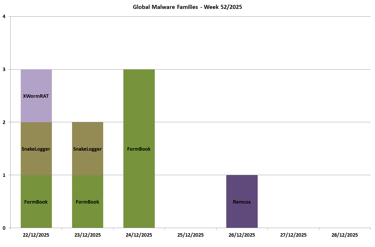 During the monitored week, global campaigns decreased compared to the previous week, while no campaigns in Italian were found.The week was characterized by Password Stealer of the Families: FormBook, Remcos, SnakeLogger and XWormRAT.