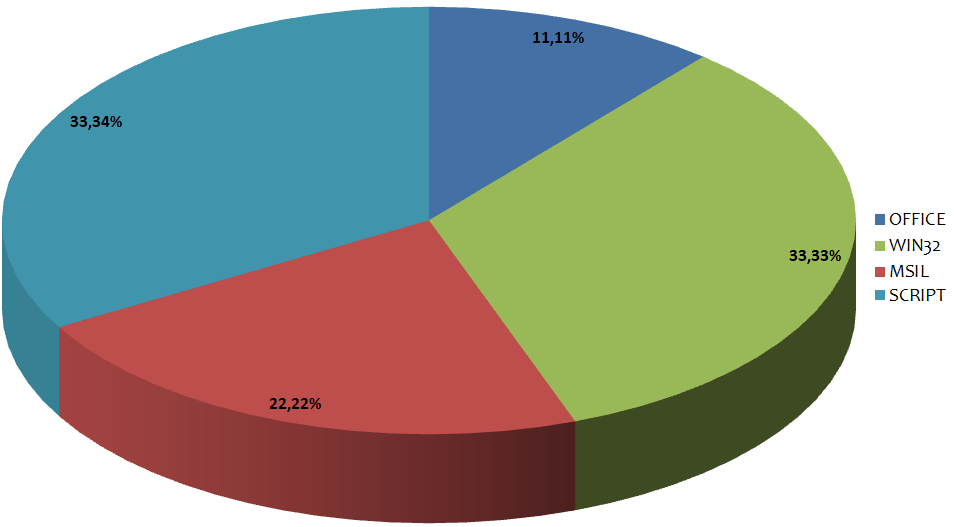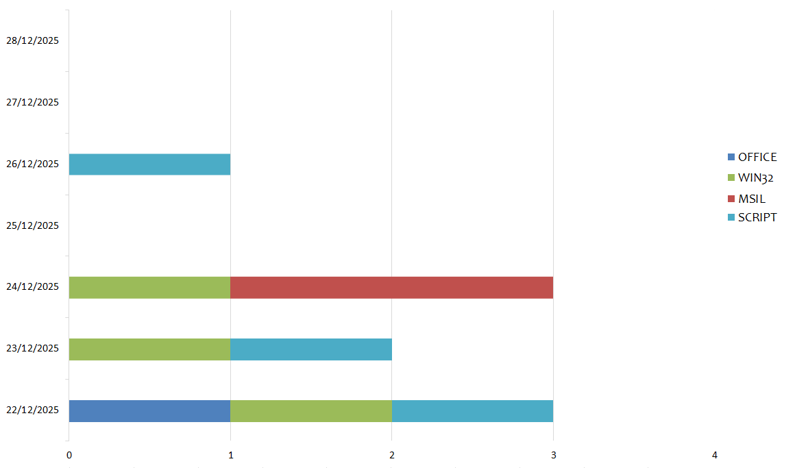 Instead in this graph we see the distribution based on malware family. In the past week 4 different families were detected: