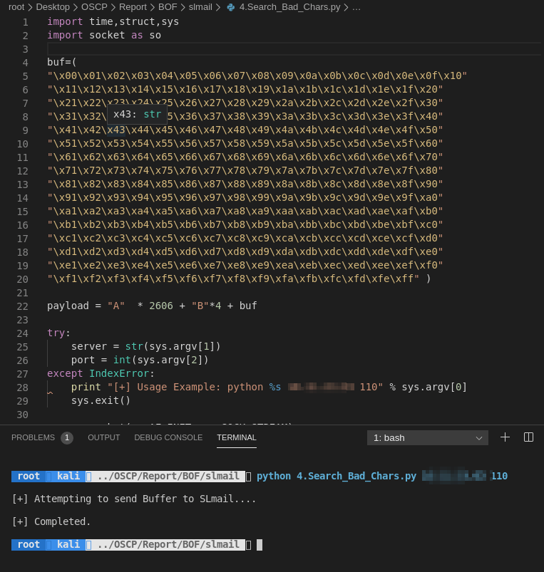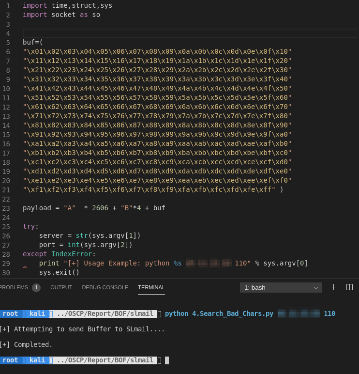 Below the standalone script to crash the slmail using Buffer Overflow and Finding the Offset