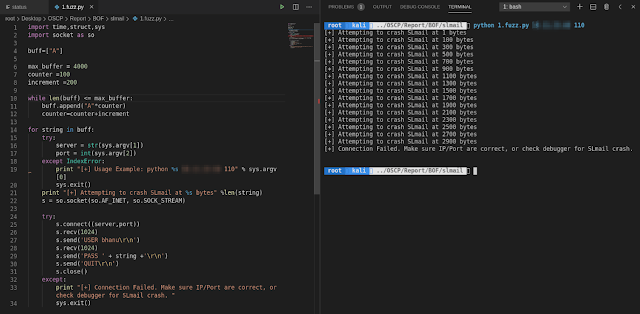 input correctly which can lead us to exploit some kind of vulnerability. This fuzzing script is very useful not just for your Buffer Overflow OSCP preparation, it can be used for all kinds of buffer overflow testings.