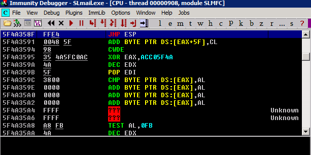 It can be noted that “5F4A358F”. JMP ESP address should not contain any bad characters