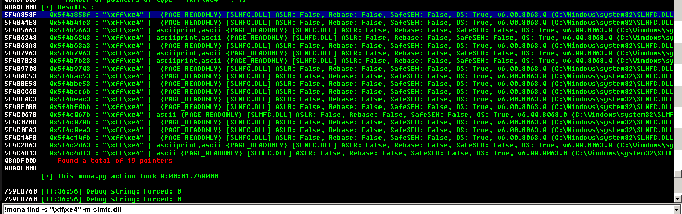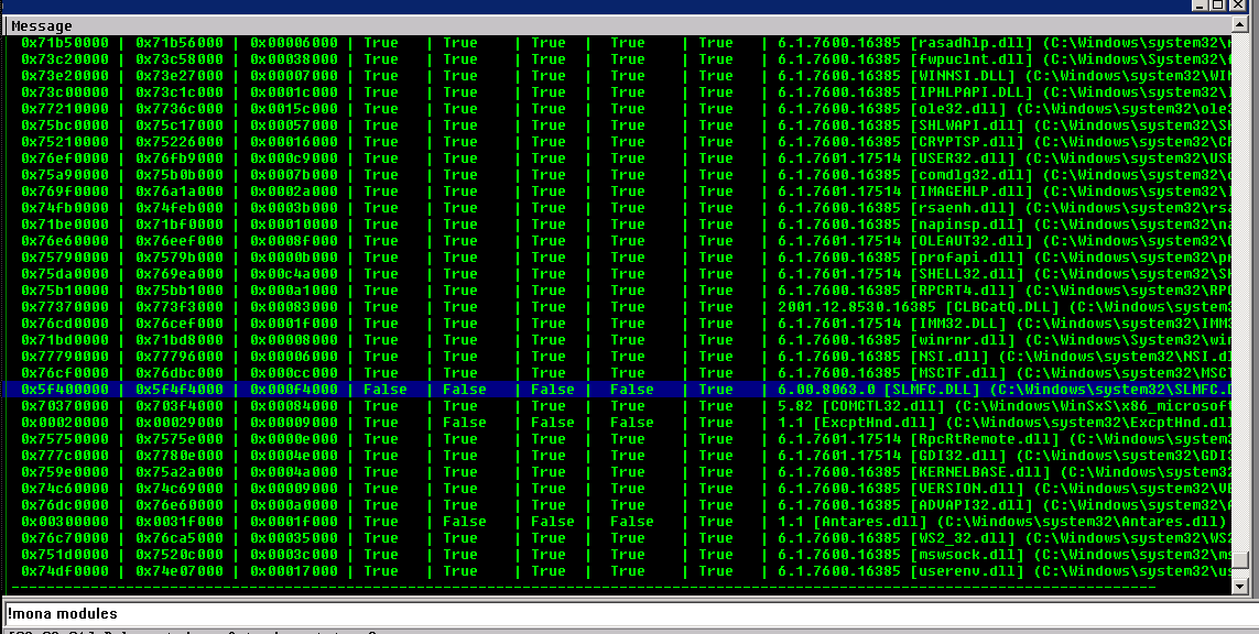 slmfc.dll using mona in immunity debugger, the following command can be used.