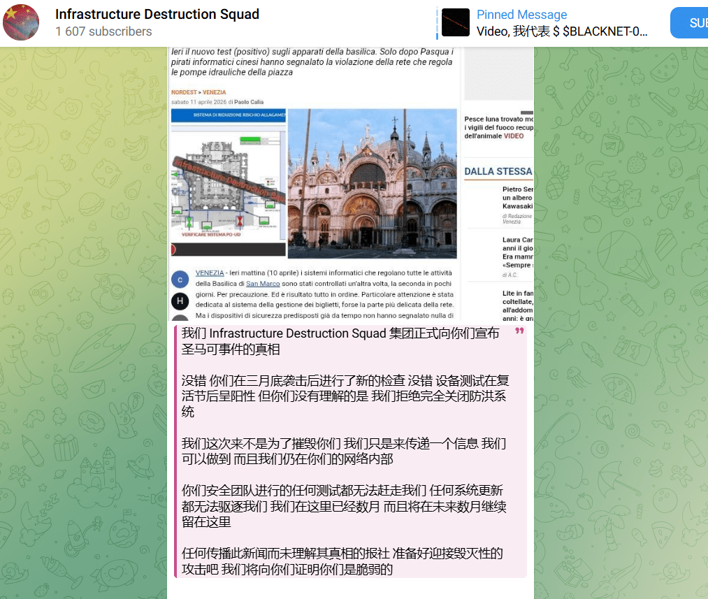 嗯,用户让我帮忙总结一下这篇文章的内容,控制在一百个字以内,而且不需要用“文章内容总结”或者“这篇文章”这样的开头。直接写文章描述即可。 首先,我需要通读整篇文章,抓住主要信息。文章讲的是黑客入侵了威尼斯圣马可广场的防洪泵系统,声称可以控制水泵,甚至让沿海地区被淹。这显示出现代关键基础设施面临网络安全威胁的严重性。 接下来,我得找出关键点:黑客入侵、防洪系统、潜在威胁、关键基础设施的安全问题。这些都是核心信息。 然后,我需要把这些信息浓缩成一句话,不超过一百个字。要简洁明了,涵盖主要事件和影响。 可能的结构是:黑客入侵威尼斯防洪系统,声称能控制水泵并引发洪水,凸显关键基础设施的网络安全威胁。 检查一下字数,确保在限制内,并且没有使用不需要的开头词。 最后,确认语言流畅自然,准确传达文章的核心内容。 </think> 黑客入侵威尼斯圣马可广场防洪泵系统,声称可控制水泵并引发洪水,凸显关键基础设施面临的网络安全威胁。...