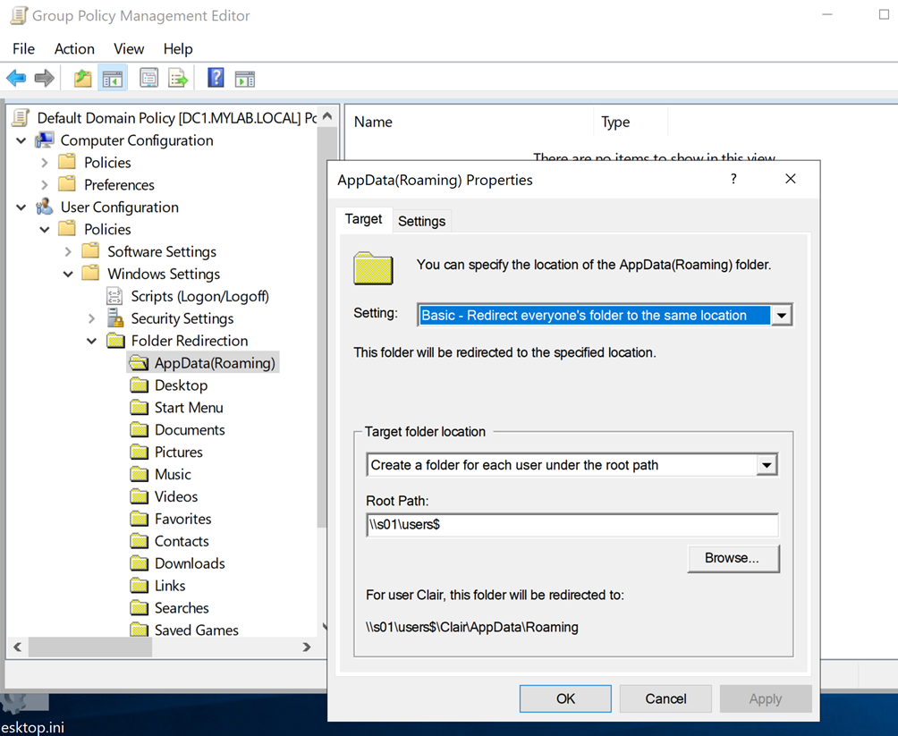 Two years ago (march 2020), I found this sort of “vulnerability” in Folder Redirection policy an...