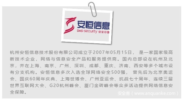 (请注明来自安全客) 公司简介杭州安恒信息技术股份有限公司于2007年成...