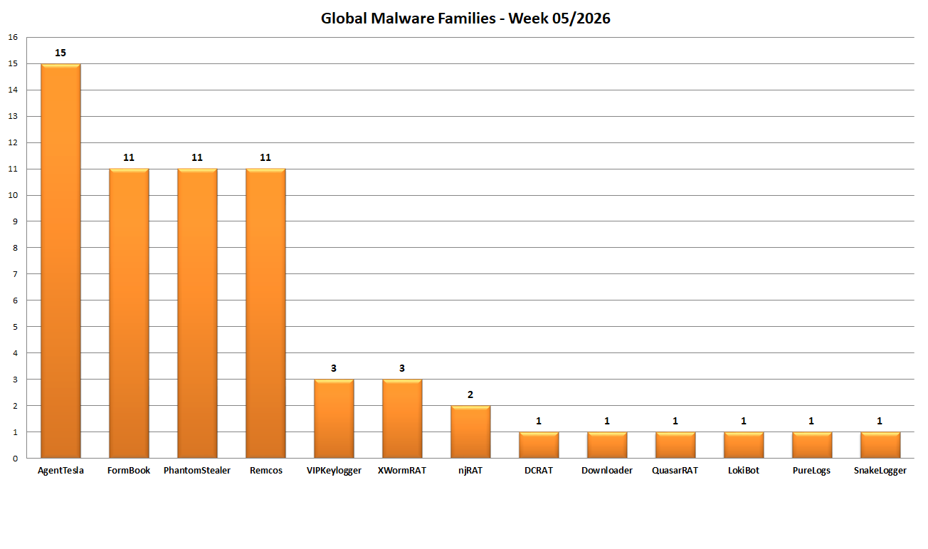 嗯,用户让我用中文帮他总结一下这篇文章的内容,控制在100个字以内。首先,我需要仔细阅读文章,找出关键信息。 文章是关于TG Soft CRAM的每周报告,主题是意大利的恶意垃圾邮件活动。时间范围是从2025年1月26日到2026年2月1日。全球和意大利的活动都有所增加。主要恶意软件家族是AgentTesla和Remcos。监测到62次活动,其中9次使用意大利语。 接下来,我需要把这些信息浓缩到100字以内。要确保涵盖主要点:报告主题、时间范围、活动增加、恶意软件家族、监测到的活动数量以及语言分布。 可能会遇到的问题是如何在有限的字数内准确传达所有重要信息。可能需要简化某些部分,比如合并时间范围和活动增加的信息。 最后,确保语言简洁明了,直接描述内容,不需要开头词。 </think> TG Soft CRAM的每周报告显示,2025年1月26日至2026年2月1日期间,全球及意大利的恶意垃圾邮件活动有所增加。主要恶意软件家族为AgentTesla和Remcos,共监测到62次活动,其中9次使用意大利语。...