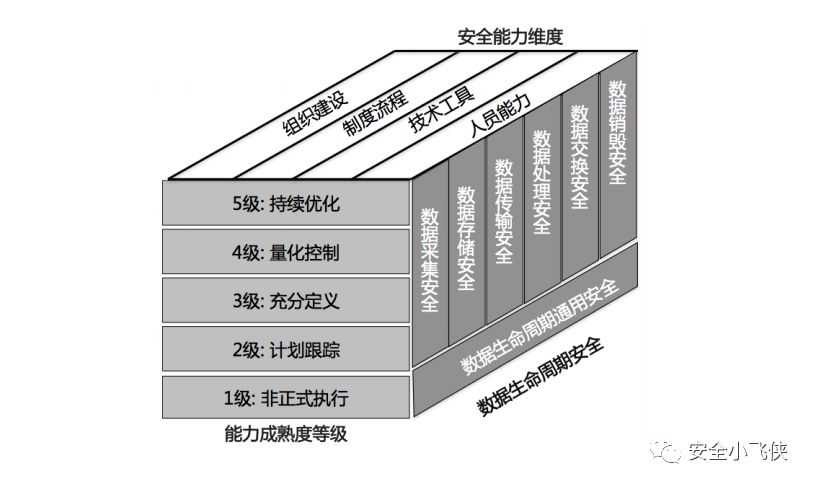 能力成熟度等级纬度:基于统一的分级标准,细化组织机构在各数据安全过程域的五个级别的能力成熟度分级要求。