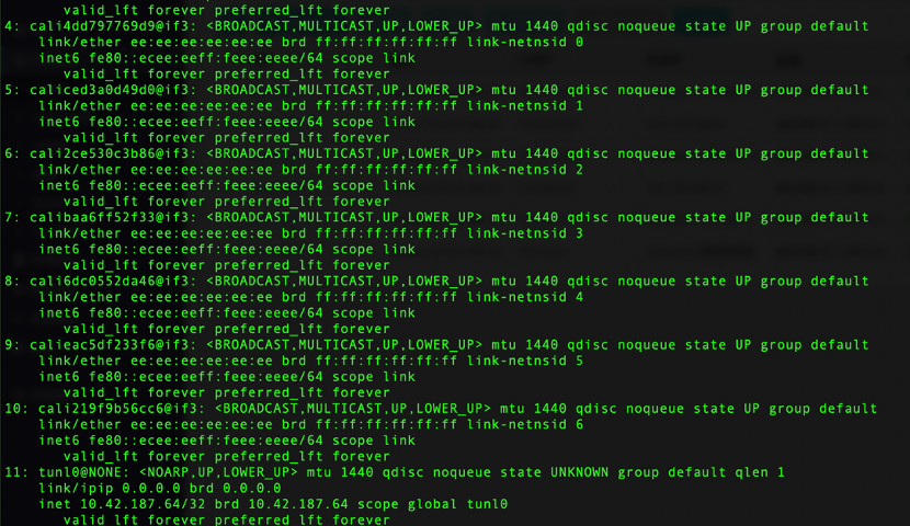 默认部署出来是 calico 的 ip-in-ip 的模式 查看宿主机网卡,会发现多了个 tunl0 网卡,这个是建立 ip 隧道的网卡