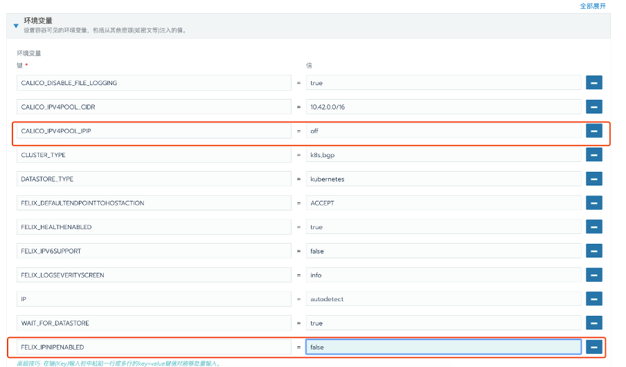 修改CALICO_IPV4POOL_IPIP改为 off,添加新环境变量FELIX_IPINIPENABLED为 false
