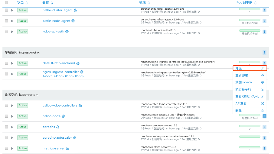 修改为 BGP 网络模式,在 system 项目中修改 calico-node daemonset