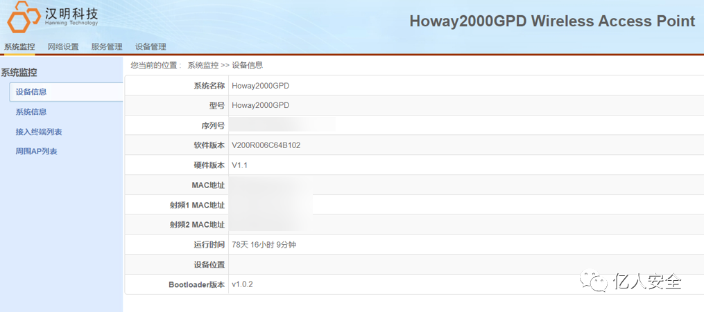通过telnet登陆到5网段的无线AP,可以执行部分命令,如ifconfig、ps -aux,其它命令都被屏蔽了,web界面比较简单没有什么功能,没有找到相关的漏洞。