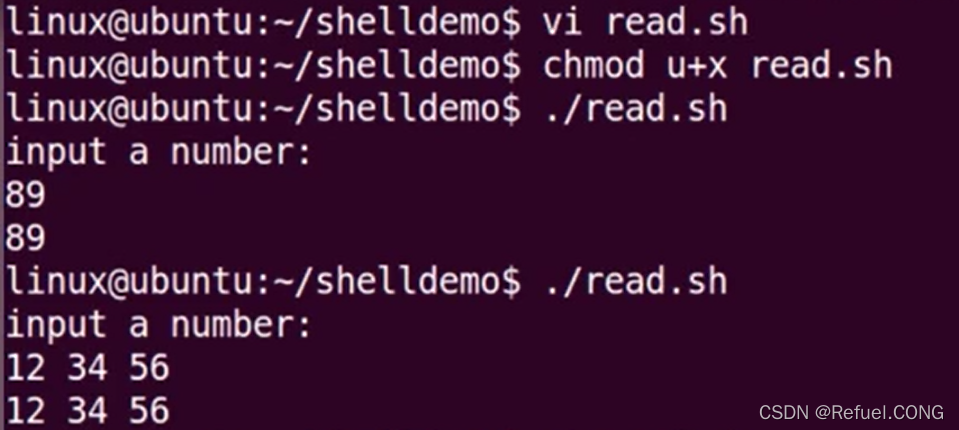 把读入行中的第一个单词(word)赋给var1 ,第二个单词赋给var2,.....把其余所有的词赋给最后一个变量。如果执行read语句时标准输入无数据,则程序在此停留等候,直到数据的到来或被终止运行。