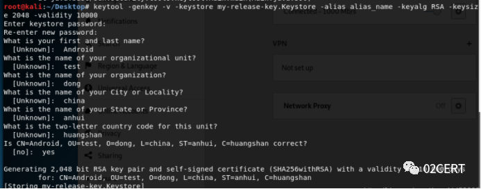 并且这个apk不能直接在Android中直接运行,因为这个apk需要一个签名才可以运行。下面我们为这个apk生成一个签名。创建签名需要使用Keytool、JARsigner、zipalign这3个软件。Kali中内置了前2个,第3个需要安装